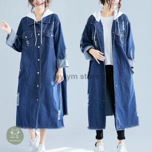カジュアルデニムワンピース パーカーワンピ ロング丈 ゆったり ベーシック 秋冬 レディース 代 30代 リラックスコーデ 女子会の通販はau Pay マーケット dj freak